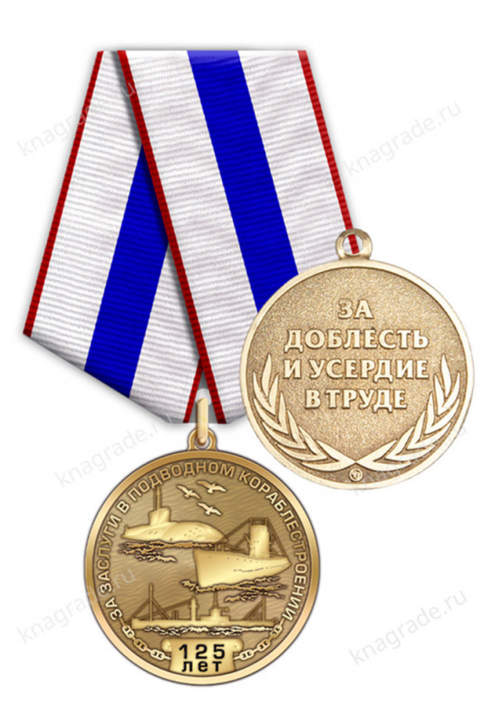 Медаль «125 лет подводному кораблестроению России» с бланком удостоверения