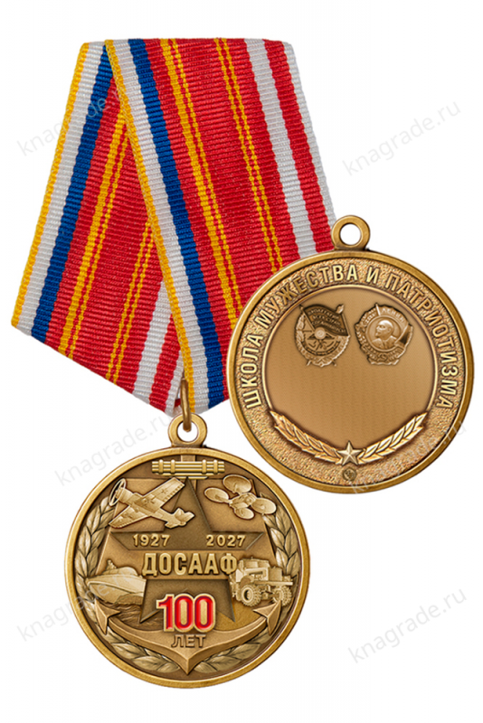 Медаль «100 лет ДОСААФ» с бланком удостоверения