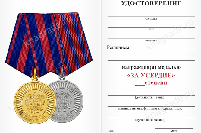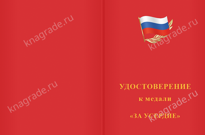 Медаль «За усердие. Кадетское образование» 1 степени с бланком удостоверения